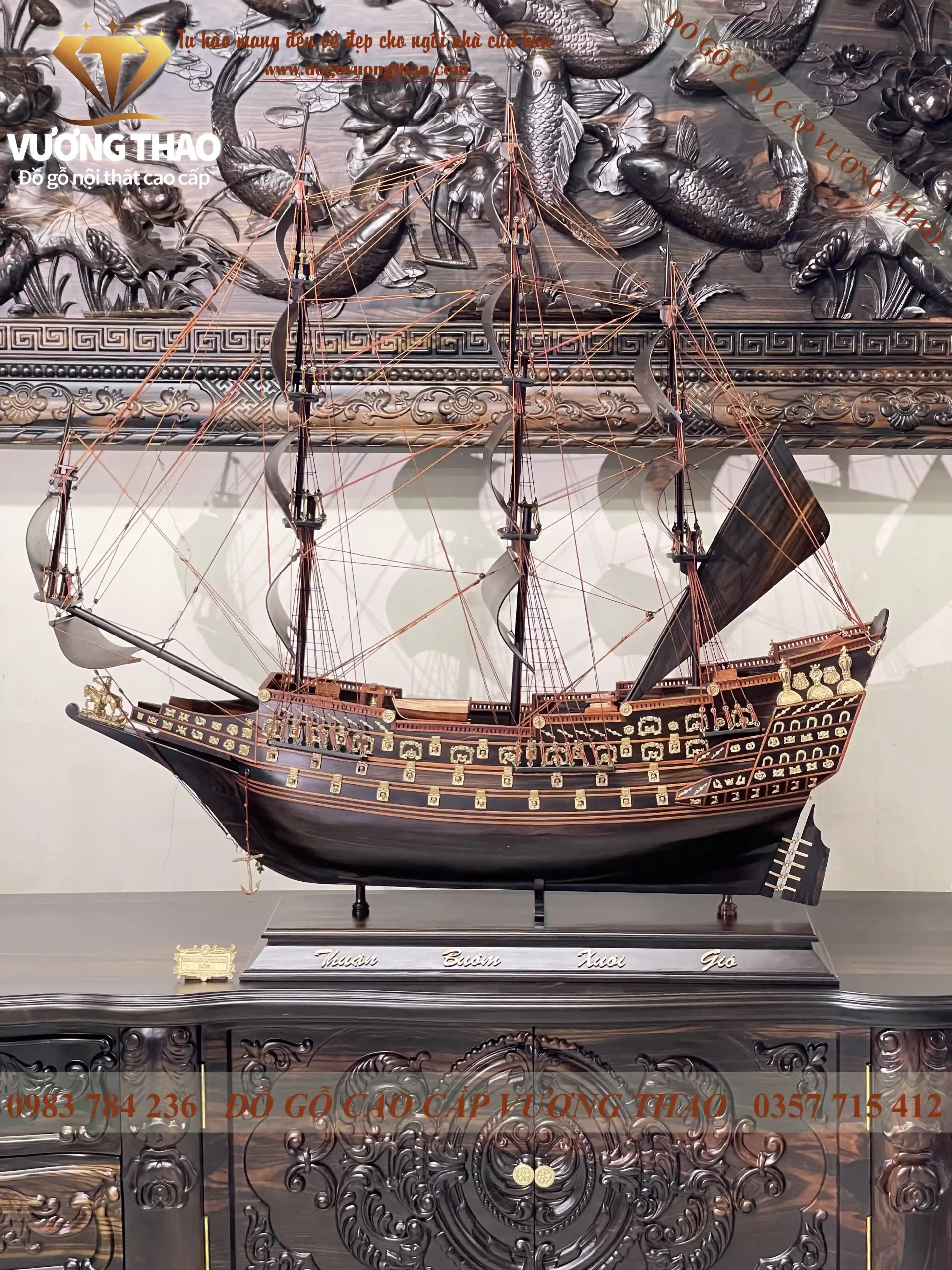- Thuyền Buồm gỗ Mun hoa