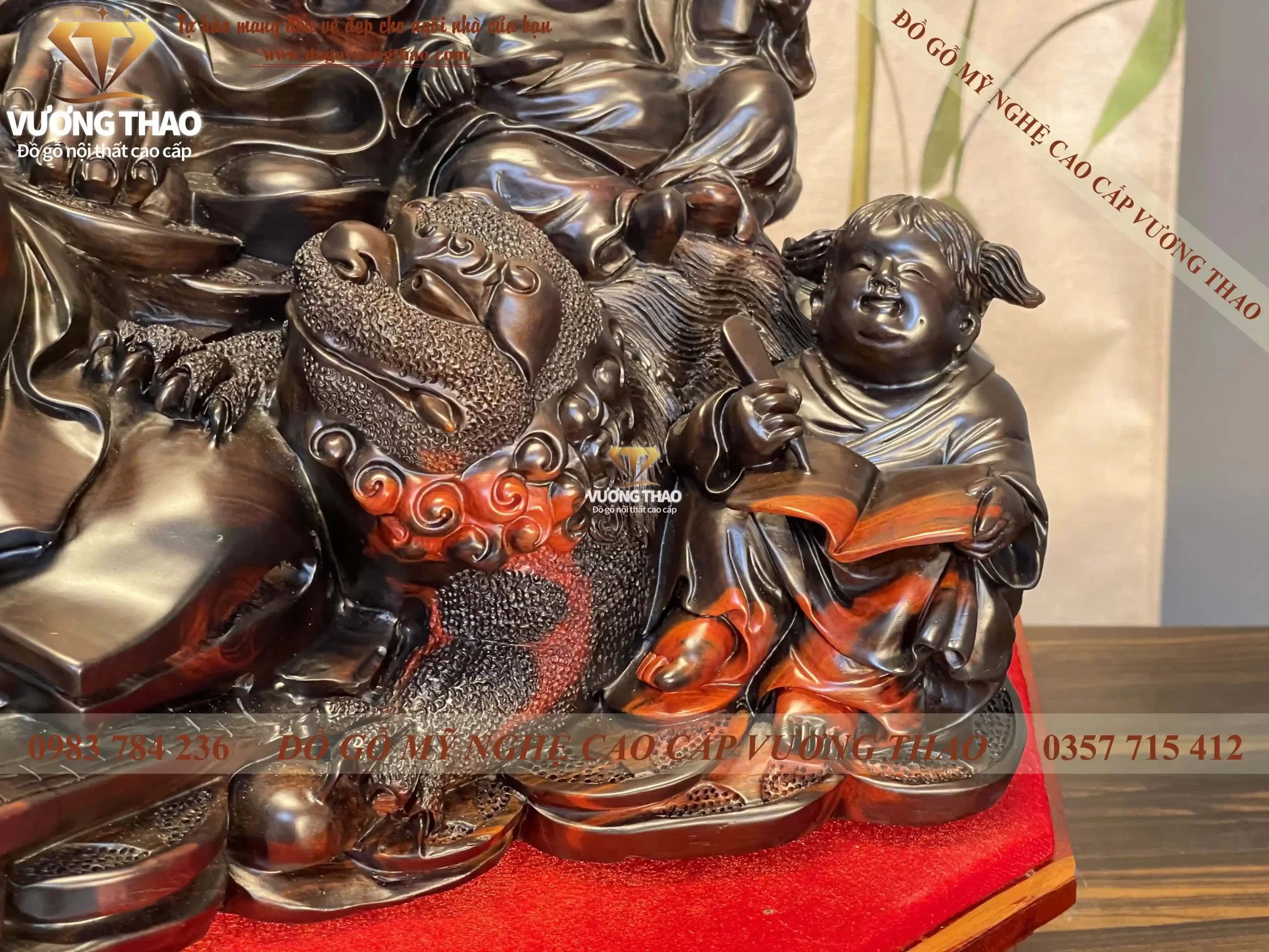 Một phiên bản khác của Phật Di Lặc Ngũ Phúc. Được làm trên chất liệu gỗ Cẩm Vàng kích thước khủng. Với hình ảnh tay trái ôm gậy Như Ý, 2 tay được đeo sâu dây Vạn Sự Như Ý. Phía dưới là 5 chú tiểu và ông Nghê đang ngồi trên bao tiền. Tượng Phật Di Lặc Ngũ Phúc gỗ Cẩm Vàng mang đến Tài Lộc và hạnh phúc cho gia chủ khi sử dụng.